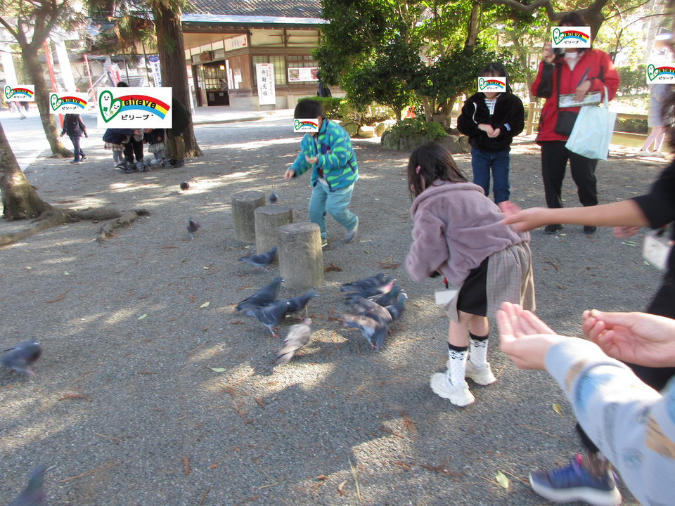 鯉や鳩に餌をあげたり、神社内を散策しました🕊️